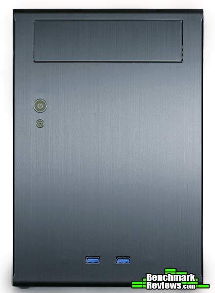 The newest model of the Lian Li PC-Q07B case comes in either black or silver. We decided to go with the black version, which is highly accentuated by the brushed aluminum finish that along with the all-around smooth curved corners are signature features from Lian Li.