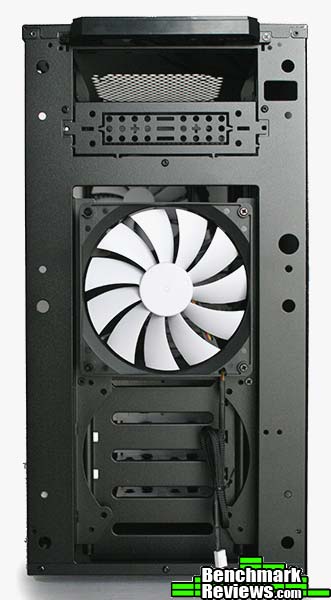 At the front we decided to keep the 140 mm fan on the top as if moved it to the bottom the fan would be chocked by a lack of airflow caused by the hard drive cages. It should be noted that this can be avoided by removing the drive cage or simply moving it to its secondary position.