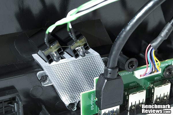 Powering the three LED strips at the front of the AZZA Z are two green LED’s. These LED’s are very bright and also provides an elegant gamer-like look when the system is powered on. The two LED’s are powered through a 4-pin molex connector and connects to the power supply. Some people may not be in favor of having to pull out another power cable just to power the front LED’s especially when space is limited in terms of cable management.