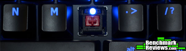 As I mentioned in the overview, the AORUS Thunder K7 utilizes Cherry MX Red switches with a blue LED located above each switch. The Cherry MX Red switches are purely linear and lack a tactile “bump” found in the Browns and Blues. The Cherry MX Red switches are a close cousin to the Cherry MX Black switches, except they require less force to depress.