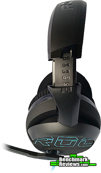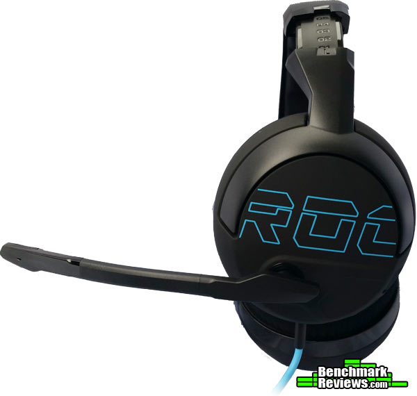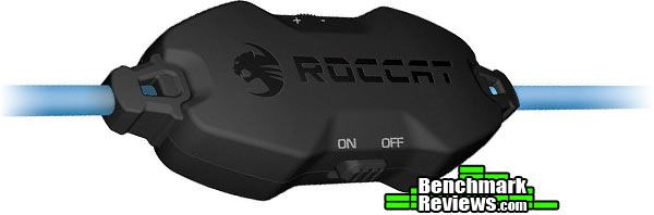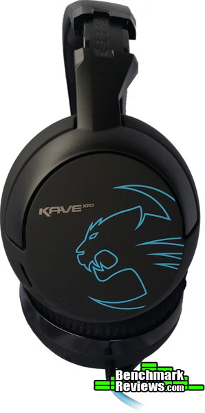 ROCCAT brands well, in my opinion. The right ear cup is adorned with the ROCCAT logo and maintains a simple yet clean look to it, which seems to be a ROCCAT design trait. Keep in mind that each ear cup has a whopping 50mm neodymium speaker in it.