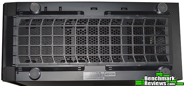 The bottom panel features a pull out dust filter for the PSU intake and dual mounts that can fit a pair of 120mm case fans or one 140mm fan. Four rubberized feet provide some ground clearance and vibration reduction.