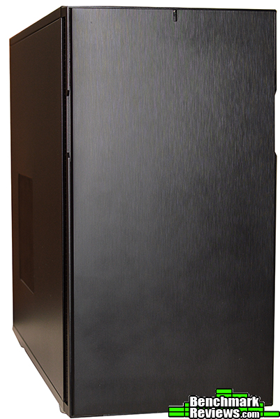 The front panel of the Define R5 is covered by a very solid door made from brushed plastic. This means the front of the chassis is left completely unblemished except for a little HDD LED light at the top. The door can be moved to open from one side or the other, or can be removed entirely. The inside of the door is covered with a large sheet of sound dampening padding, and is a very heavy material unlike the foam used in many other cases. Large vents are included on each side of the front panel for intake even if the door is in place.