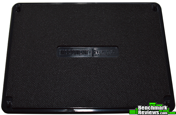 A look at one of the “Moduvent” covers shows how each is covered with a thick layer of sound dampening material on the bottom. This particular cover is from the top panel, and was easily removed by pressing on the pair of points at on the top corners of this cover.