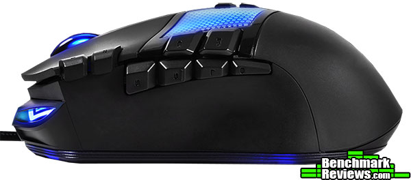 AORUS-Thunder-M7-MMO-Gaming-Mouse-Button-ShotThis mouse features 16 programmable buttons, 8 of which are on the left side of the mouse. Of course, as marketing can sometimes do, this statement is a little misleading. Two of the “programmable buttons” are not buttons at all, it’s the scroll direction of the mouse wheel. You can program each direction to do something different, but they are not “buttons”.