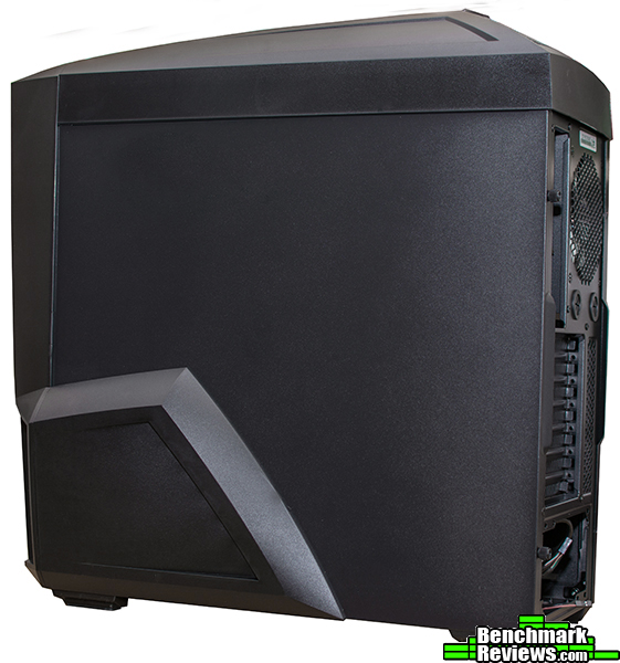 The new front panel is made from a brushed plastic instead of the previous meshed design. This creates a new, more attractive look, but also reduces airflow to the front intakes. A sliding cover is included for the ODD bay in order to maintain a finished look. On either side, we can see vents for the side and front intakes. These vents are not filtered, nor do they allow much airflow to the front panel intakes.