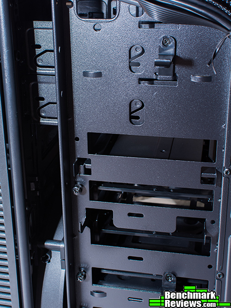You might be wondering, what do I do if I remove all the 2.5/3.5″ drive bays? Well, you could always mount drive in the ODD bays or you can secure two of the trays to the backplate using the shown mounting points.
