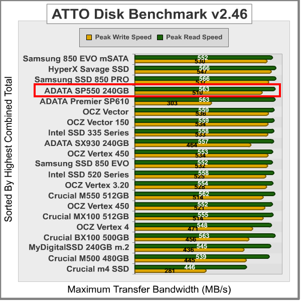 240GB Premier SP550 SSD ATTO Benchmark Results