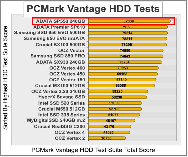 240GB ADATA Premier SP550 SSD PCMark VantageResults