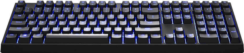 With the basic overview covered, it’s time to inspect the detailed featured included in Cooler Master’s Quick Fire XTi. To begin with, this Cherry MX Blue-switch mechanical keyboard features blue and red LEDs on each switch to combine and create up to 35 backlight colors per key.