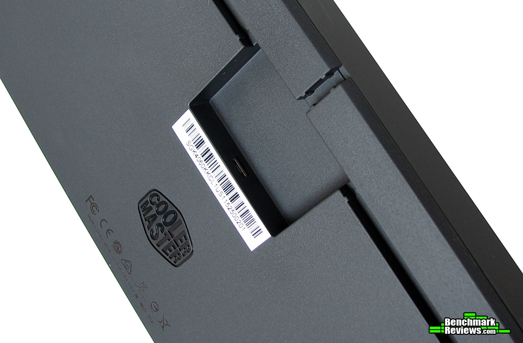 Cooler Master has designed Quick Fire XTi with three cable channels to route the USB cable from the underside port to your computer system. While you do lose a couple inches of cord due to the deep location of the Micro-USB port, the cable management options are very nice and reduce desktop clutter. There are no USB ports available for other peripherals on Quick Fire XTi, likely to ensure bandwidth remains at its most optimal for input transmission.
