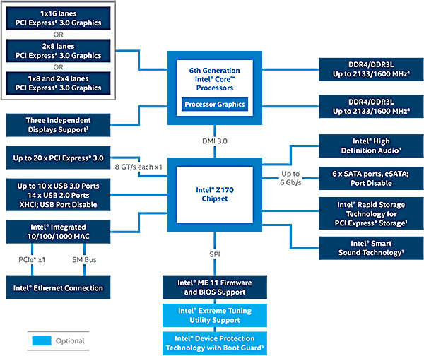 Intel’s Skylake CPU and its accompanying Z170A chipset represent significant changes from the past generations. The Fully Integrated Voltage Regulator, a touted feature of Haswell, is gone; but the real news is that Intel’s mainstream platform finally gets the extra PCI-E lanes it so desperately needed.