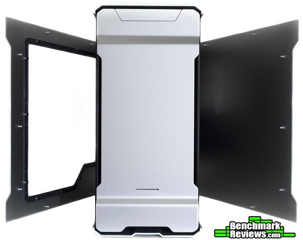 Once the side panels are opened wide enough, they can be lifted off and removed entirely from the case. The main structure of the case and the side panels are separated by a thin layer of foam to prevent any vibration caused by metal on aluminum contact.