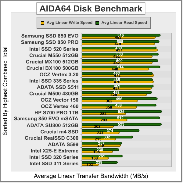 - Finalwire AIDA64: Disk Benchmark component tests linear read and write bandwidth speeds