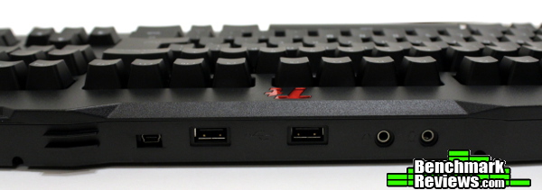 This keyboard includes two USB 2.0 ports along with the upstream mini-USB for connecting the keyboard itself. The audio headphone/mic jacks are standard 3.5mm ports, and appear to use a USB audio driver to pass their signals through the lone detachable USB cable. It’s definitely a solution that cuts down on cable clutter, but some may not want to add another audio device to their system – either way, in use they are relatively free of the electronic noise that plagues most integratedkeyboard jacks. During playback I didn’t notice any “hiss,” only after the system was idle for a short period of time would some noise creep in to my headphones. Overall, it was one of the better experiences I’ve had using the built-in audio jacks, as most keyboards I’ve used struggle with additional noise.