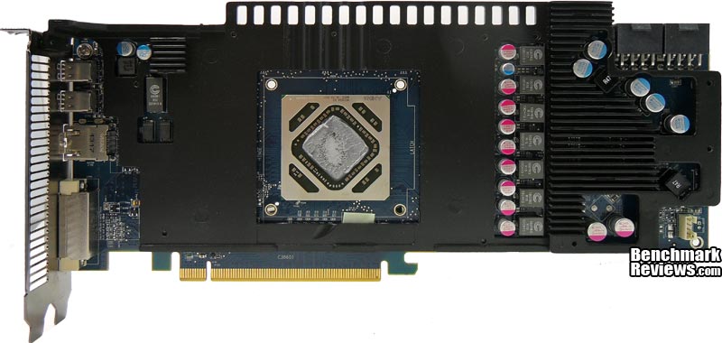 A quick look at the rear of the HIS Radeon R9 280X iPower IceQ X2 Turbo Boost 3GB video card shows that the size is not merely relative to the cooler. The PCB is absolutely massive too. The 9-phase power design of this top end model creates a trade off between power and size.